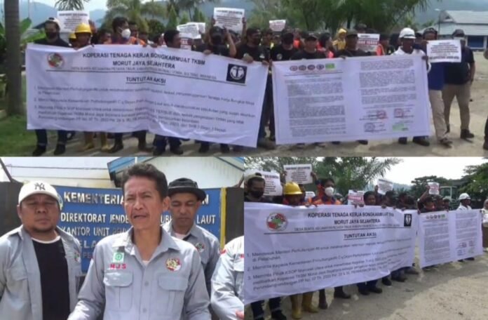Morowali Utara, batarapos.com – Tenaga Kerja Bongkar Muat (TKBM) Morut Jaya Sejahtera menggelar aksi damai di depan Kantor UPP Kelas III Kolonodale, Senin (8/12/2025) mulai pukul 10.00 WITA hingga selesai.