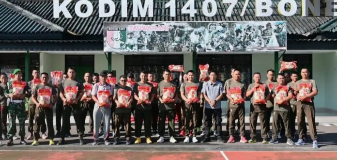Puluhan karung beras dibagikan kepada prajurit Komando Distrik Militer 1407 Bone dibawah komando Letkol Inf Laode Muhammad Idrus, sebagai bentuk kepedulian sosok pemimpin untuk kesejahteraan prajurit .