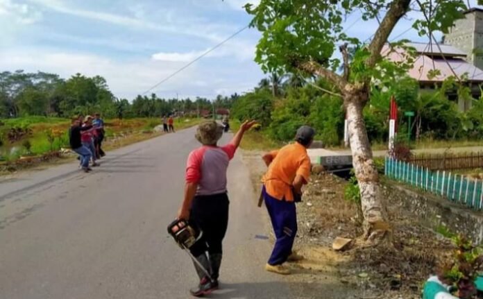 Luwu Timur, batarapos.com – Mengantisipasi cuaca yang biasa terjadi seperti hujan disertai angin kencang, segenap jajaran Pemdes Sindu Agung kecamatan Mangkutana kabupaten Luwu Timur ambil bagian dalam kegiatan Penebangan pohon rawan tumbang, Rabu (30/12/2020).