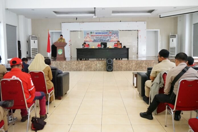 Luwu Timur, batarapos.com – Asisten Ekonomi dan Pembangunan (Ekbang) Kabupaten Luwu Timur, Masdin membuka kegiatan Workshop Rencana Kontinjensi (Rekon) Gempa dan Pra Simulasi Tahun 2022, di Gedung Wanita Simpursiang, Malili, Senin (5/12/2022).