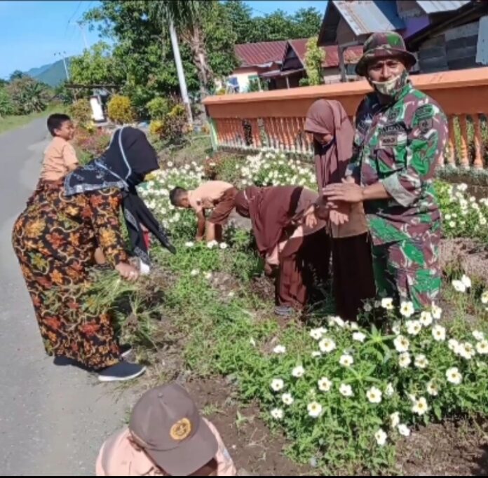 Dengan adanya kepedulian seorang Babinsa Serda Dediman sebagai aparat teritorial yang berkeliling memantau wilayah binaan sekaligus membantu para guru-guru bersama muridnya yang sedang membersihkan halaman sekolah.
