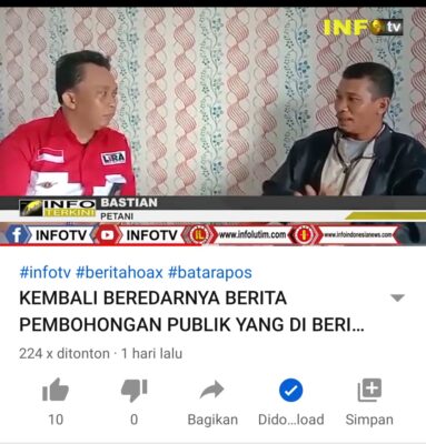 Youtube yang diediting khusus menyerupai siaran tv itu bernama Info TV, berawal dari wawancara yang dilakukan oleh Pengawas KAMU terhadap ketua kelompok tani lalu diunggah ke youtube dan beri judul “KEMBALI BEREDAR BERITA PEMBOHONGAN PUBLIK YANG DIBERITAKAN OLEH MEDIA BATARAPOS” selanjutnya disebarluaskan ke media sosial Facebook dan group WhatsApp.