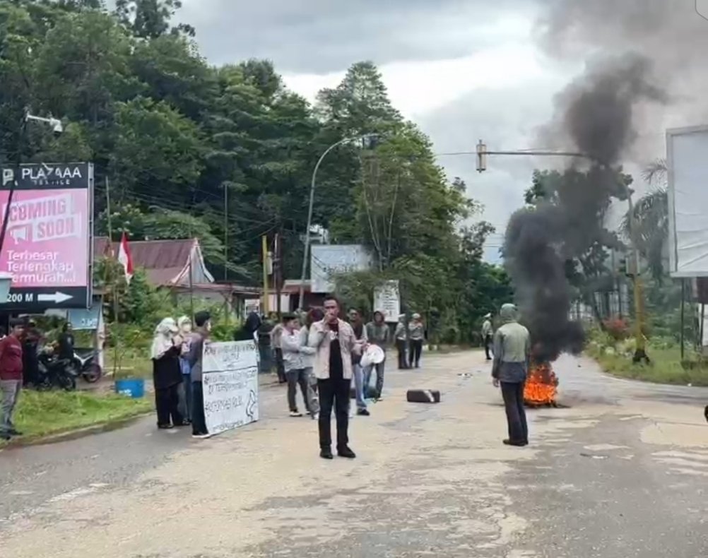 Mereka menggelar aksi demo di tiga titik, pertama di Jalan Trans Sulawesi, lalu di depan Polres Luwu Timur dan halaman kantor DPRD Luwu Timur.