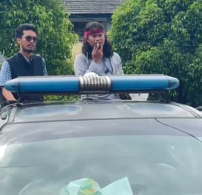Peserta aksi demo diantar keliling di tiga titik menggunakan mobil dinas Polres Luwu Timur, yang dikawal langsung oleh Kapolres Luwu Timur, AKBP. Ario Putranto.