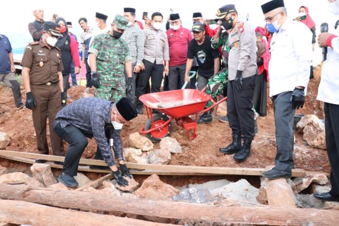 Luwu Timur, batarapos.com – Sebagai penutup dari kegiatan “Menyapa Desa” di Kecamatan Towuti, Bupati Luwu Timur, H. Budiman bersama unsur Forkopimda Kabupaten Luwu Timur, melakukan peletakan batu pertama pembangunan Masjid Al-Muhajirin yang berada di poros pekaloa mahalona, Desa Pekaloa, Jumat (18/2/2022).
