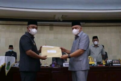 Luwu Timur, batarapos.com – Bupati Luwu Timur, H. Budiman menyerahkan Rancangan Peraturan Daerah tentang Anggaran Pendapatan dan Belanja Daerah (APBD) Tahun Anggaran 2022 kepada Wakil Ketua DPRD, H. Usman Sadik. Penyerahan Ranperda APBD Tahun 2022 itu dilakukan pada Sidang Paripurna DPRD, Jumat (22/10/2021).