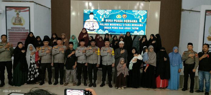 Polres Morowali Utara menggelar buka puasa bersama insan pers sekaligus memberikan santunan kepada puluhan anak yatim.