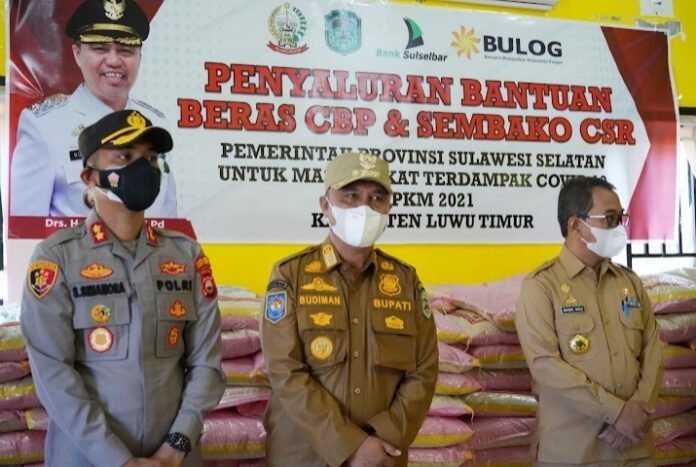 Luwu Timur, batarapos.com – Pemerintah Kabupaten Luwu Timur melalui Dinas Sosial, Pemberdayaan Perempuan dan Perlindungan Anak (Dinsos PPPA) menyalurkan bantuan sosial untuk masyarakat terdampak Covid-19. Bantuan diserahkan langsung Bupati Luwu Timur, H. Budiman, di Aula Dinsos PPPA, Sabtu (18/09/2021).