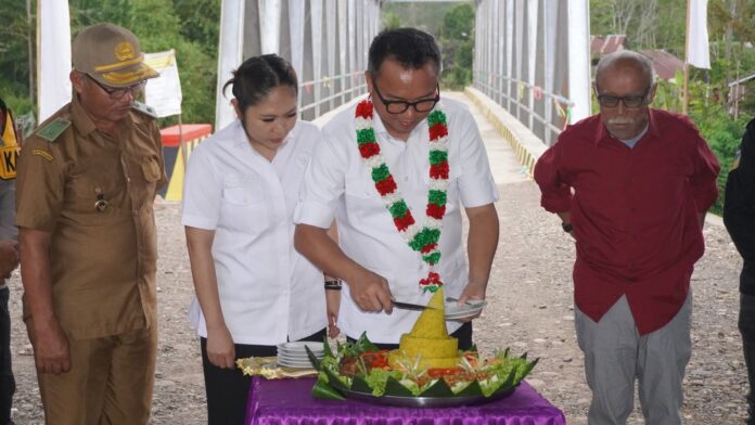 Peresmian ditandai dengan pengguntingan pita oleh Bupati Delis, didampingi Ketua TP-PKK Morut yang juga anggota DPD RI Dapil Sulawesi Tengah, Ny. Febriyanthi H.D.J. Hehi, S.Si, Apt, dilanjutkan dengan peninjauan langsung ke lokasi jembatan.
