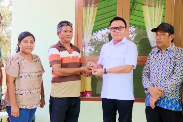 Morowali Utara, batarapos.com – Bupati Morowali Utara Delis Julkarson Hehi, menyerahkan satu unit rumah sebagai ganti rugi dari PT. Bumanik kepada Hermanto salah satu warga Desa Molino yang terdampak bencana banjir, pada Kamis (06/11/2025).