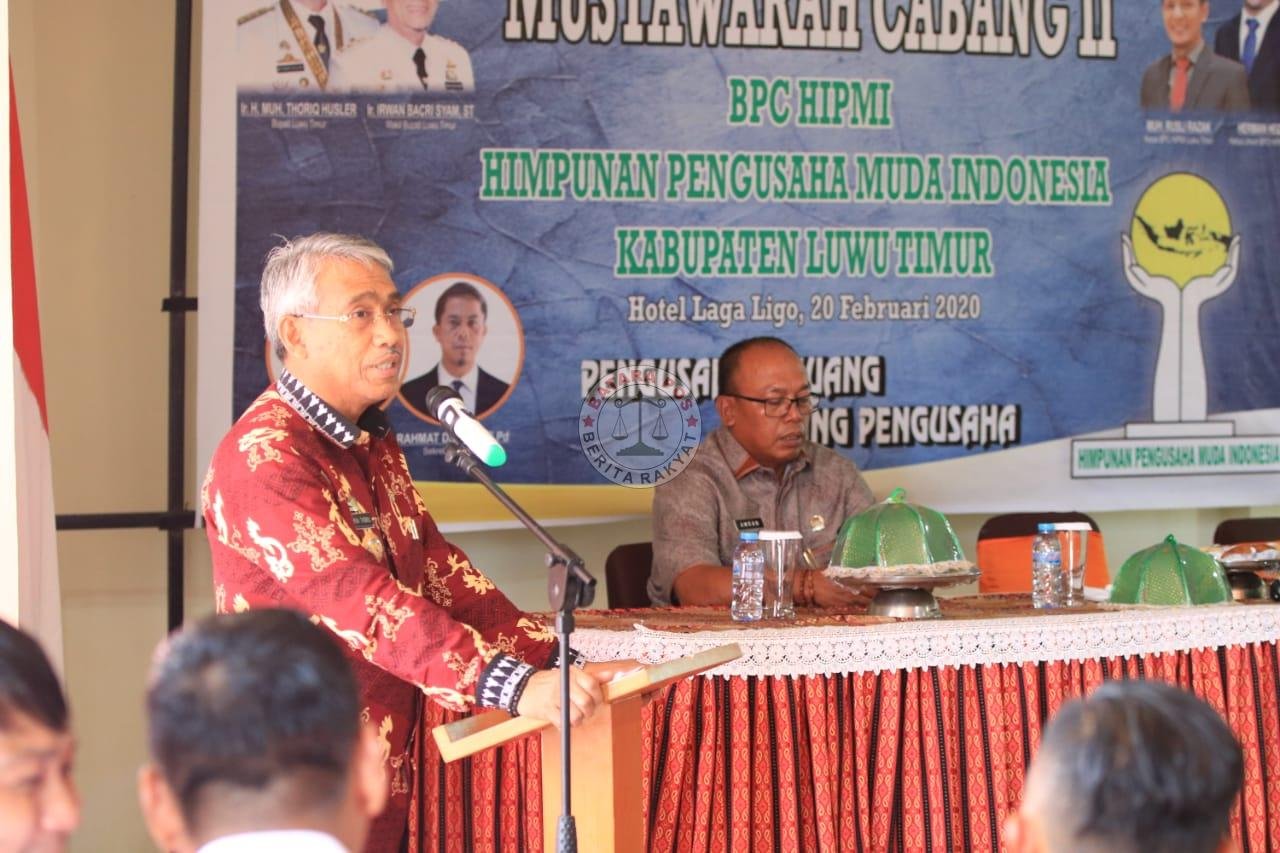 Dalam sambutannya, Bupati Thoriq Husler menyampaikan apresiasi atas digelarnya Muscab HIPMI yang ke II Kabupaten Luwu Timur.