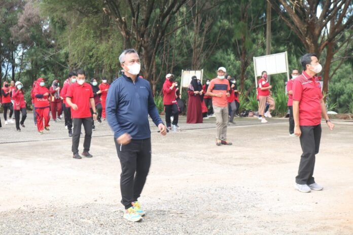 Luwu Timur, batarapos.com – Usai melakukan senam di halaman Kantor Dinas Kesehatan (Dinkes), Bupati Luwu Timur, H. Budiman memberikan arahan kepada para pegawai Dinkes termasuk tenaga Upah Jasa Dinkes agar selalu bekerja tulus dan berkinerja baik dalam mendukung program Pemerintah Kabupaten Luwu Timur.