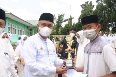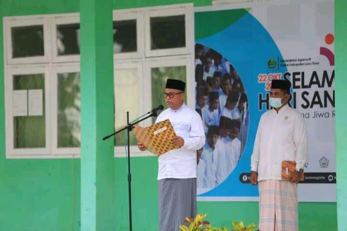 Luwu Timur, batarapos.com – Bupati Luwu Timur, H. Budiman, memimpin langsung upacara Peringatan Hari Santri Tahun 2021 di Halaman Kantor Kementerian Agama Kabupaten Luwu Timur, Jumat (22/10/2021). Bergaya khas santri, Bupati tampil sebagai Inspektur upacara dengan mengenakan sarung.
