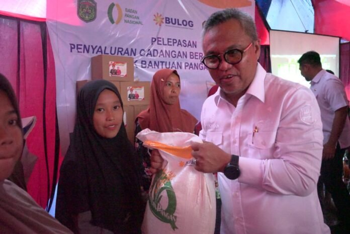 Luwu Timur, batarapos.com – Bupati Luwu Timur, H. Budiman bersama Wakil Bupati, Mohammad Akbar Andi Leluasa menyalurkan Cadangan Pangan Pemerintah (CPP) dalam rangka Pemberian Bantuan Pangan Beras Tahap I Tahun Anggaran 2024 yang berlangsung di Gudang Bulog Divre Desa Maleku, Kecamatan Mangkutana, Rabu (7/2/2024).