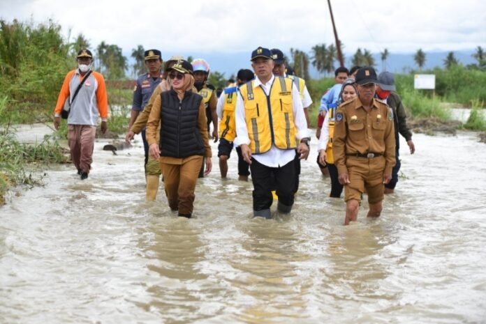 Direktur Operasi dan Pemeliharaan (OP) Direktorat Jenderal Sumber Daya Air Kementerian PUPR Adenan Rasyid, Bupati Luwu Utara, Indah Putri Indriani dan Kepala BBWS Pompengan Jeneberang Ir. Djaya Sukarno meninjau langsung dua sungai yang menjadi penyebab banjir di beberapa wilayah terutama di Kecamatan Malangke dan Baebunta Selatan. Senin (5/9/2022) kemarin.