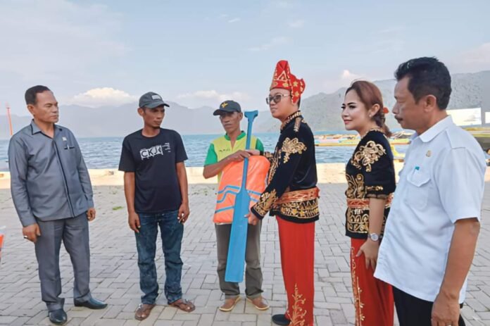 Morut, batarapos.com – Bupati Morowali Utara Delis J. Hehi menyerahkan secara simbolis perahu bermesin untuk sejumlah kelompok nelayan, berlangsung di Pelabuhan Perikanan Kolonodale, Senin (24/10/2022).