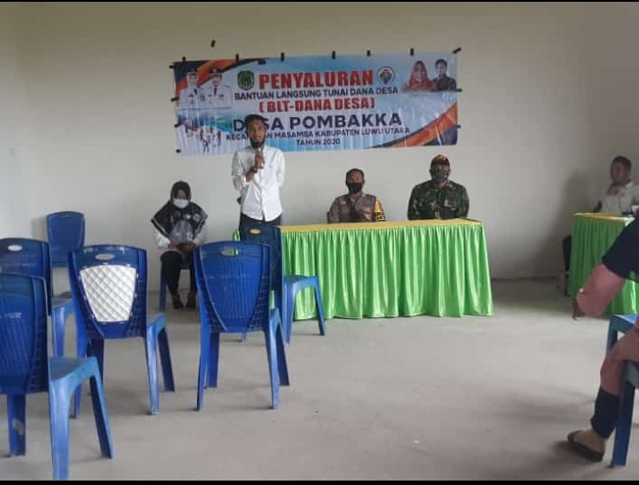 Penyaluran BLT-DD tahap 4 dan 5 ini di hadiri oleh camat Masamba (Adjie Saputra), Aparat desa Pombakka, Bhabinkamtibmas, Bhabinsa, pendamping desa dan BPD.