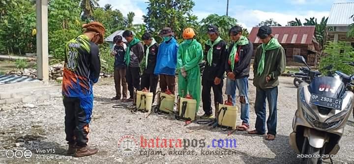 Bersama lawan corona pemdes Sindu Agung bersama komunitas Korpala Lutim dan Tracman lakukan penyemprotan disinfektan di fasilitas umum, tempat ibadah dan rumah-rumah warga.