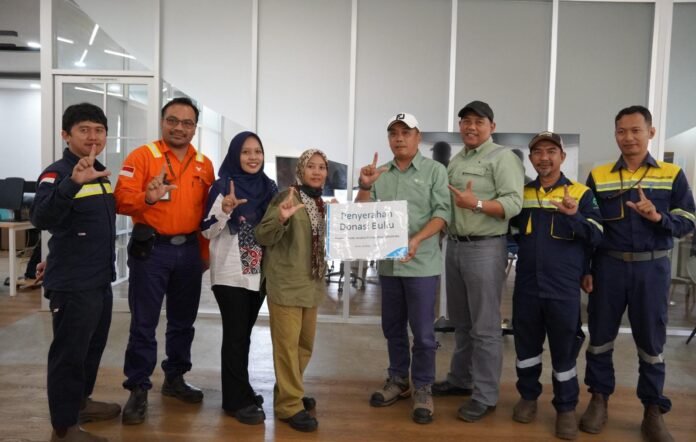 Penyerahan donasi ke pengelola Perpustakaan Jendela Dunia Desa Tokalimbo dilakukan pada Senin (20/10/2025) di kantor GFS, Sorowako, Luwu Timur, Sulawesi Selatan.
