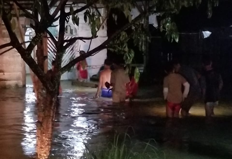 “Sejak sore diguyur hujan, sekarang air sudah setinggi paha, air juga sudah mulai naik ke aspal” Kata warga yang rumahnya ikut terendam.