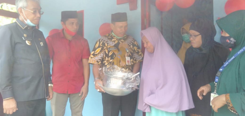Luwu Timur, batarapos.com – Dinas Sosial dan P3A Kabupaten Luwu Timur juga serahkan sembako dan alat masak kepada ibu Asmawati penerima rumah layak huni program bedah rumah batarapos.com tahap IV tahun 2020.