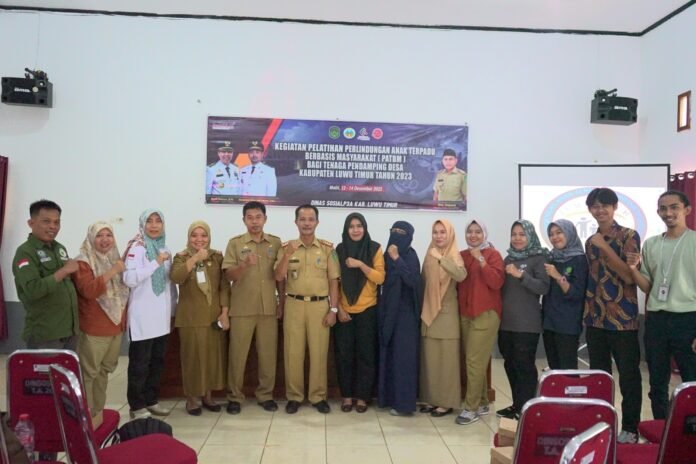 Luwu Timur, batarapos.com – Dinas Sosial Pemberdayaan Perempuan dan Perlindungan Anak (Dinsos P3A) Kabupaten Luwu Timur menggelar pelatihan Perlindungan Anak Terpadu Berbasis Masyarakat (PATBM) bagi tenaga pendamping desa tahun 2023, di Aula Kantor Dinsos P3A, Selasa (12/12/2023).