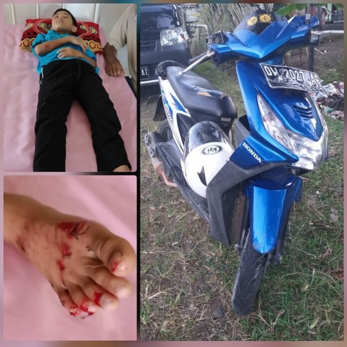 Bone, batarapos.com – Warga Kecamatan Bengo, Kabupaten Bone bernama H. Suyuti Bin Sulaiman (45) terpaksa dilarikan ke Rumah Sakit Umum Daerah (RSUD) Tenriawaru bersama boncengannya Muh. Gifar (14) Jumat, (25/6/2021).
