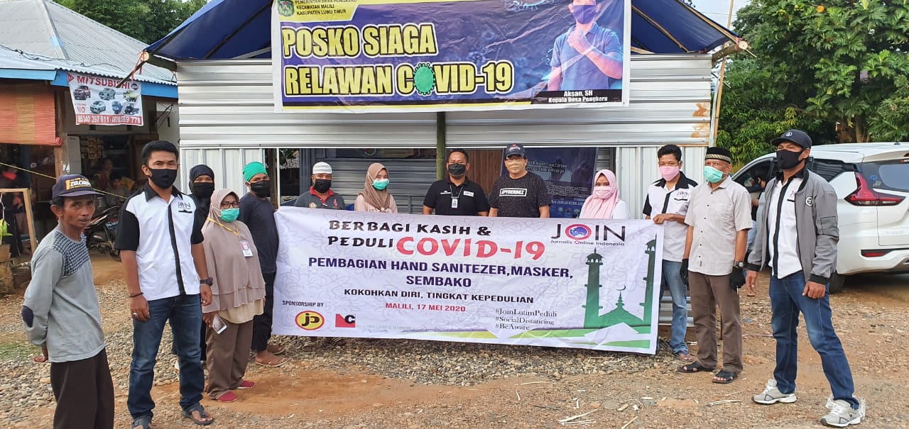 Luwu Timur, batarapos.com – Pengurus Jurnalis On Line Indonesia (JOIN) Kabupaten Luwu Timur berbagi kasih & sebagai bentuk peduli dampak Covid-19 dengan menyerahkan sembako, Hand sanitizer serta masker di panti asuhan Darusalam serta beberapa posko covid-19 Kecamatan Malili, Minggu (17/5/2020).