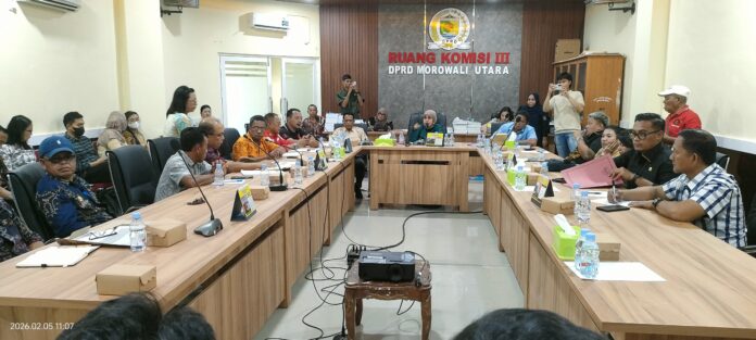 Morowali Utara, batarapos.com – Dewan Perwakilan Rakyat Daerah (DPRD) Kabupaten Morowali Utara menggelar Rapat Dengar Pendapat (RDP) di Ruang Rapat Komisi III DPRD Morowali Utara, Kamis (5/2/2026).