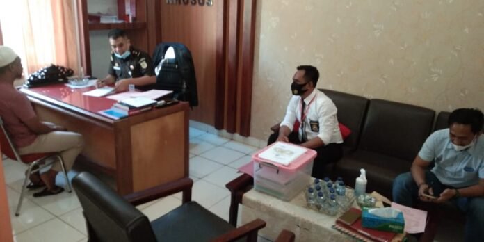 Saat diserahkan ke Kejaksaan Negeri Luwu Timur, tersangka dan barang bukti diterima oleh Kasi Pidsus Kejaksaan Negeri Luwu Timur. (Tim).