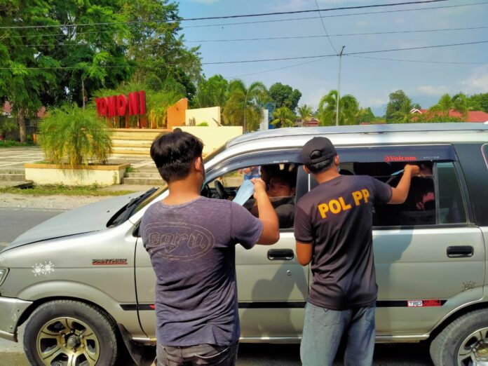 Luwu Timur, batarapos.com – Dalam rangka menindaklanjuti Gerakan Luwu Timur bermasker yang telah dicanangkan Gubernur Sulsel, Nurdin Abdullah pada 21 Oktober 2020 lalu sekaligus sosialisasi Peraturan Bupati terkait protokol Kesehatan di Luwu Timur, maka Camat Tomoni, Umar Hasan Dalle bersama staf, unsur TNI, Polri, Satpol PP dan Damkar, melakukan pembagian masker gratis kepada warga yang melintas di jalan Trans Sulawesi, Jumat (23/10/2020).