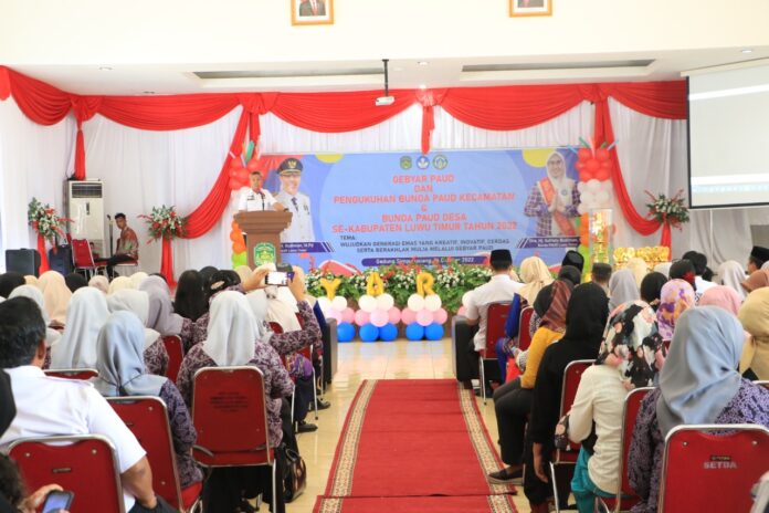 Luwu Timur, batarapos.com – Kabupaten Luwu Timur menggelar Gebyar PAUD dirangkaikan dengan Pengukuhan Bunda PAUD Kecamatan dan Desa Se-Kabupaten Lutim Tahun 2022 di Gedung Simpurusiang, Malili, Rabu (26/10/2022).