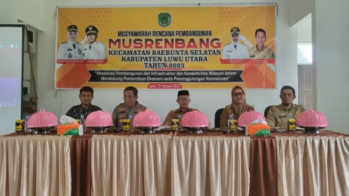Luwu Utara, batarapos.com – Pemerintah Kecamatan Baebunta Selatan (Bansel), kabupaten Luwu Utara menggelar musyawarah rencana pembangunan (Musrenbang) tingkat Kecamatan tahun 2023, Selasa (31/1/2023).