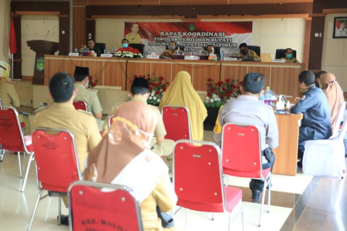 Luwu Timur, batarapos.com – Penjabat Sementara (Pjs) Bupati Luwu Timur, Jayadi Nas, membuka secara resmi Rapat Koordinasi (Rakor) Tim Dukungan Elemen Satuan Kerja (DESK) Pemilihan Kepala Daerah (Pilkada) Serentak yang berlangsung di Aula Sasana Praja Kantor Bupati Luwu Timur, Selasa (24/11/2020).