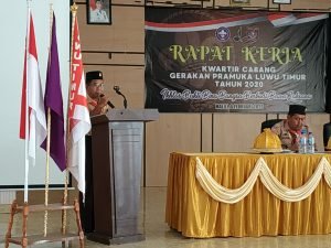 Luwu Timur, batarapos.com – Gerakan Pramuka Kwartir Cabang (Kwarcab) Luwu Timur menggelar kegiatan rapat kerja tahun 2020 dengan tema “Ikhlas Bakti Bina Bangsa Berbudi Bawa Laksana”. Rapat kerja ini dibuka Ketua Harian Kwarcab Luwu Timur, La Besse di Aula Dinas Pendidikan, Kamis (6/2/2020).