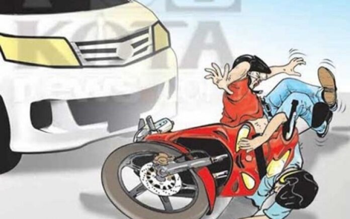 Sepeda motor bernomor polisi DP 4729 TE yang dikendarai dua orang berboncengan dilaporkan menabrak mobil sedan bernomor polisi DN 1608 GG dari arah berlawanan.