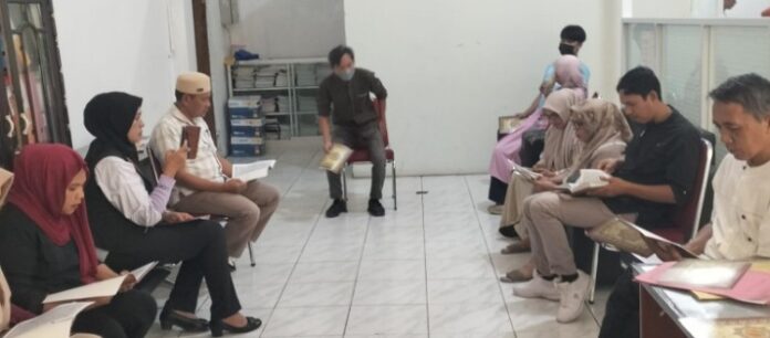 Bertempat di Kantor Disporapar, para pegawai terlihat antusias, dan khusyuk melaksanakan Tadarus Al Qur’an berjemaah, Jumat (20/2/2026), yang dipimpin Kepala Disporapar, Saleh.
