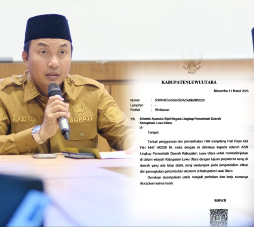 “ ASN diimbau untuk membelanjakan THR di wilayah Kabupaten Luwu Utara agar perputaran uang di daerah tetap stabil, yang berdampak pada pengendalian inflasi dan peningkatan pertumbuhan ekonomi, ” demikian isi himbauan dalam surat tersebut.