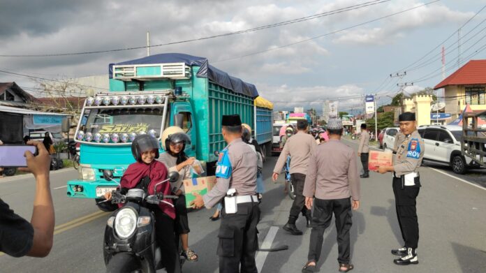 Kegiatan berlangsung lancar tanpa mengganggu arus lalu lintas, sekaligus diiringi imbauan kamtibmas agar masyarakat tetap tertib dan berhati-hati dalam berkendara selama bulan Ramadan.