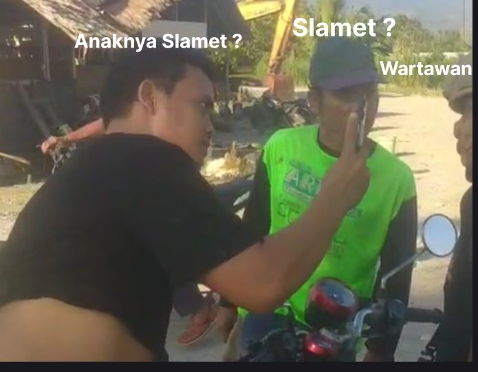 ” Dulu juga pernah ada LSM dipukuli di tambangnya, sekarang Slamet beraksi lagi sama anaknya, wartawan lagi disandera gegara minta hapus foto kegiatan ilegalnya,” Ucap Warga.
