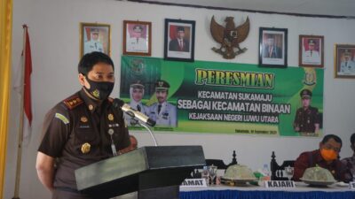 Luwu Utara, batarapos.com – Kepala Kejaksaan Negeri Luwu Utara, Haedar. SH. MH, Resmikan Kecamatan Sukamaju sebagai Kecamatan Binaan dan Koperasi, Kamis (10/9/2020) di aula kantor Camat Sukamaju.