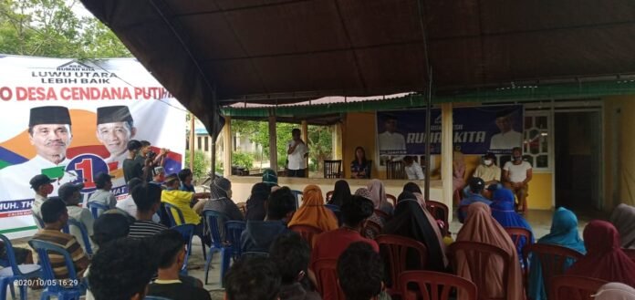 Luwu Utara, batarapos.com – Pasangan calon Bupati Muh. Thahar Rum dan Wakil Bupati Luwu Utara Rahmat Laguni nomor urut 1 (satu) lakukan kampanye politik di Desa Cendana Putih II, Kecamatan Mappedeceng, Kabupaten Luwu Utara, Senin (5/10/2020).