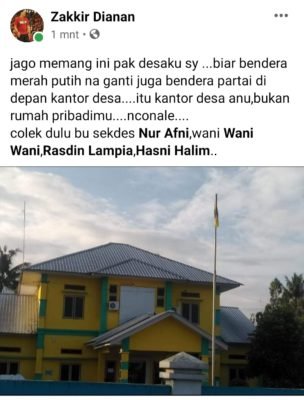 “Jago memang ini pak desaku sy …biar bendera merah putih na ganti juga bendera partai di depan kantor desa….itu kantor desa anu,bukan rumah pribadimu….nconale….