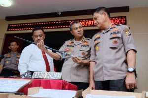 Adapun barang bukti yang berhasil disita, berupa jenis senpi rakitan seperti 1 (satu) jenis revolper cold S&W special, 1 (satu) Pucuk senpi PTB 100 H Schmidt Osthem/Rhoen Cal 6 mm MOD 5a, 1 (satu) Pucuk senjata Softgun MP-654 K Cal 4,5 mm no T12009990, 1 (satu) buah cember senapan PCP beserta laras, dan juga 1 (satu) lembar struk pengiriman kantor pos nomor 135933244.