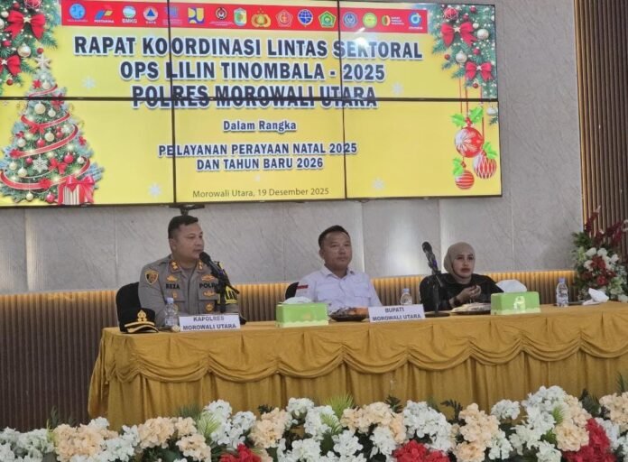 Morowali Utara, batarapos.com – Guna memastikan kesiapan pengamanan sekaligus memberikan pelayanan terbaik kepada masyarakat dalam rangka perayaan Natal 2025 dan Tahun Baru 2026, Polres Morowali Utara menggelar Rapat Koordinasi (Rakor) Lintas Sektoral Bidang Operasional Operasi Lilin Tinombala 2025 yang berlangsung di Aula Polres Morowali Utara, Jumat (19/12/2025).