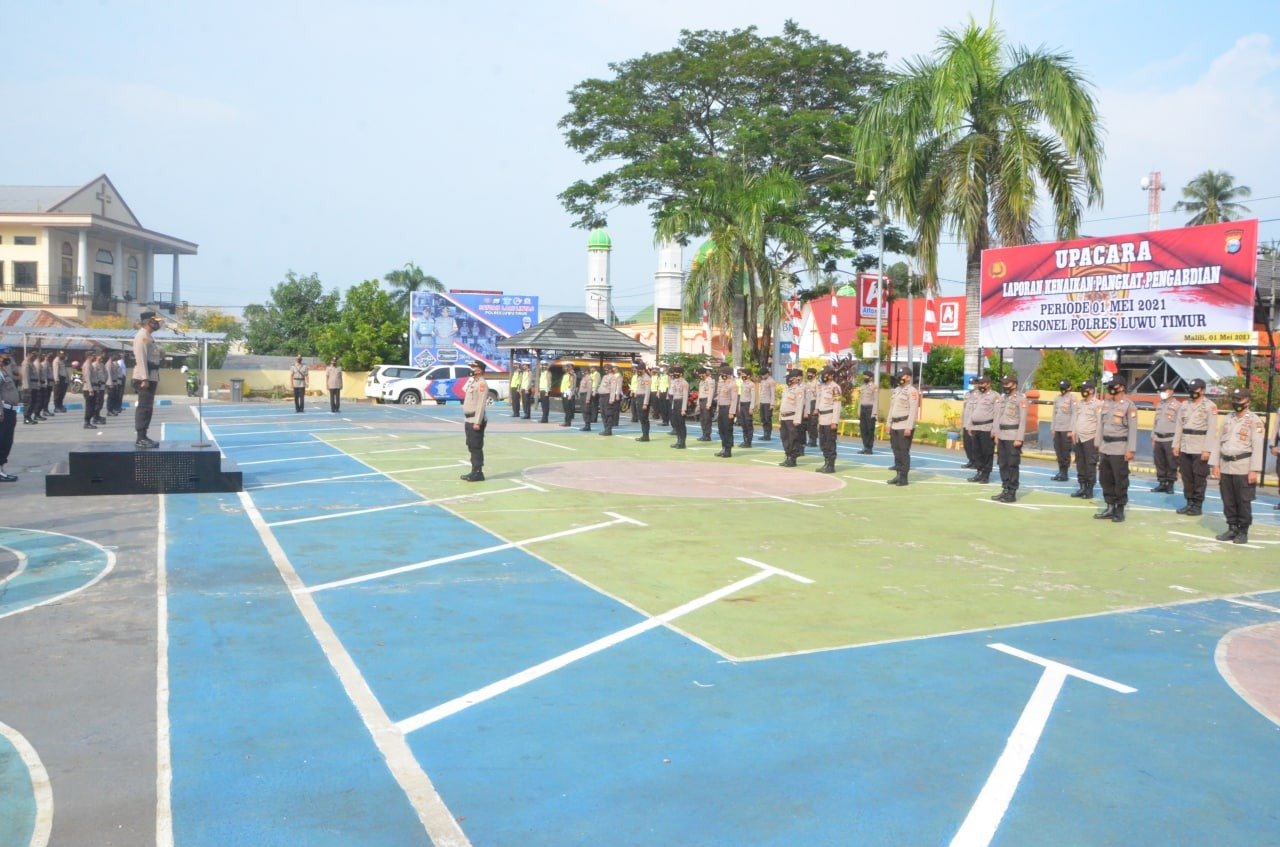 Luwu Timur, batarapos.com – Kapolres Luwu Timur AKBP Indartmoko S.ik memimpin upacara kenaikan pangkat pengabdian anggotanya di halaman mako polres Luwu Timur, Sabtu pagi (1/5/2021).