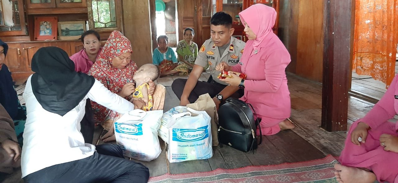 Dalam kesempatan tersebut Kapolsek Bangkala dan ketua Bhayangkari ranting memberikan bantuan berupa makanan dan kelengkapan balita.