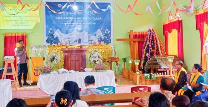 Luwu Utara, batarapos.com – Kapolsek Malangke Polres Luwu Utara IPTU Arifan Efendi bersama personil, melaksanakan PAM giat perayaan Natal Gereja Toraja jemaat Lumu-Lumu, di Desa Tolada Kecamatan Malangke, Kabupaten Luwu Utara, Senin (25/12/2023).
