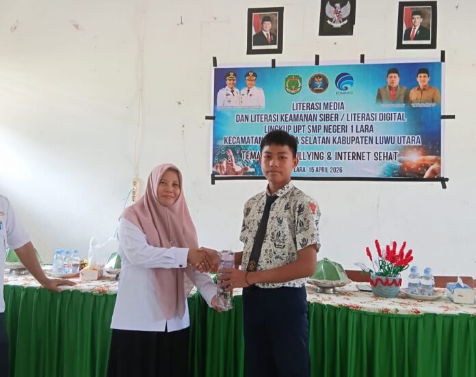 Literasi Digital dengan tema Cyberbullying dan Internet Sehat, dilaksanakan oleh Dinas Komunikasi, Informatika, Statistik dan Persandian (Diskominfo-SP) Kabupaten Luwu Utara, melalui Bidang Persandian.pada Rabu (15/04/2026) kemarin.