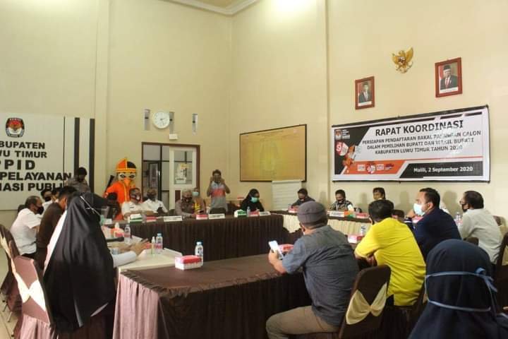 Luwu Timur, batarapos.com – Komisi Pemilihan Umum (KPU) Kabupaten Luwu Timur menggelar Rapat Koordinasi Persiapan Pendaftaran Pasangan Calon Bupati Dan Wakil Bupati Luwu Timur Tahun 2020, di Kantor KPU Jl. Soekarno – Hatta KM. 02 Puncak Indah, Malili, Rabu (2/9/2020).